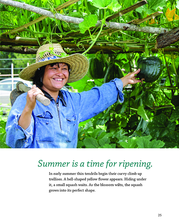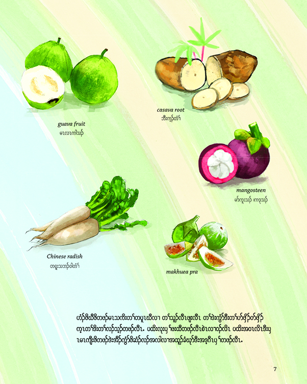 This book was begun in 2014 and produced collaboratively by nine young adults from the Karen Youth Art Group with the help of volunteers working through FRANK Gallery. Over two years they have photographed, drawn and painted to capture the magic of Transplanting Traditions in all seasons. Thier hope is that this bi-lingual book will be shared and enjoyed by families from all cultures.