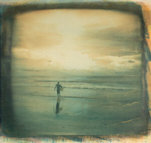 By nature I’m inclined to alchemy mixing, stirring and altering matter. Creating something from something else. I don’t think there’s a higher purpose in life than to create. My work is the result of engaging two related art forms: photography and printmaking. Both are about image making and both involve time. A photograph represents a moment in time; whereas, a finished gum print happens slowly, one layer at a time, often taking weeks to create. When finished, it becomes layered not only in pigments but also in a new kind of time. One that seems to carry an archetypal quality, like dreams. I am drawn to bodies of water and to our interactions with the forces of the deep, the dark, the mysterious. Life beyond what we see with our eyes. Like a roll of film in the dark of a camera awaiting the push of the shutter button. Awaiting revelation.