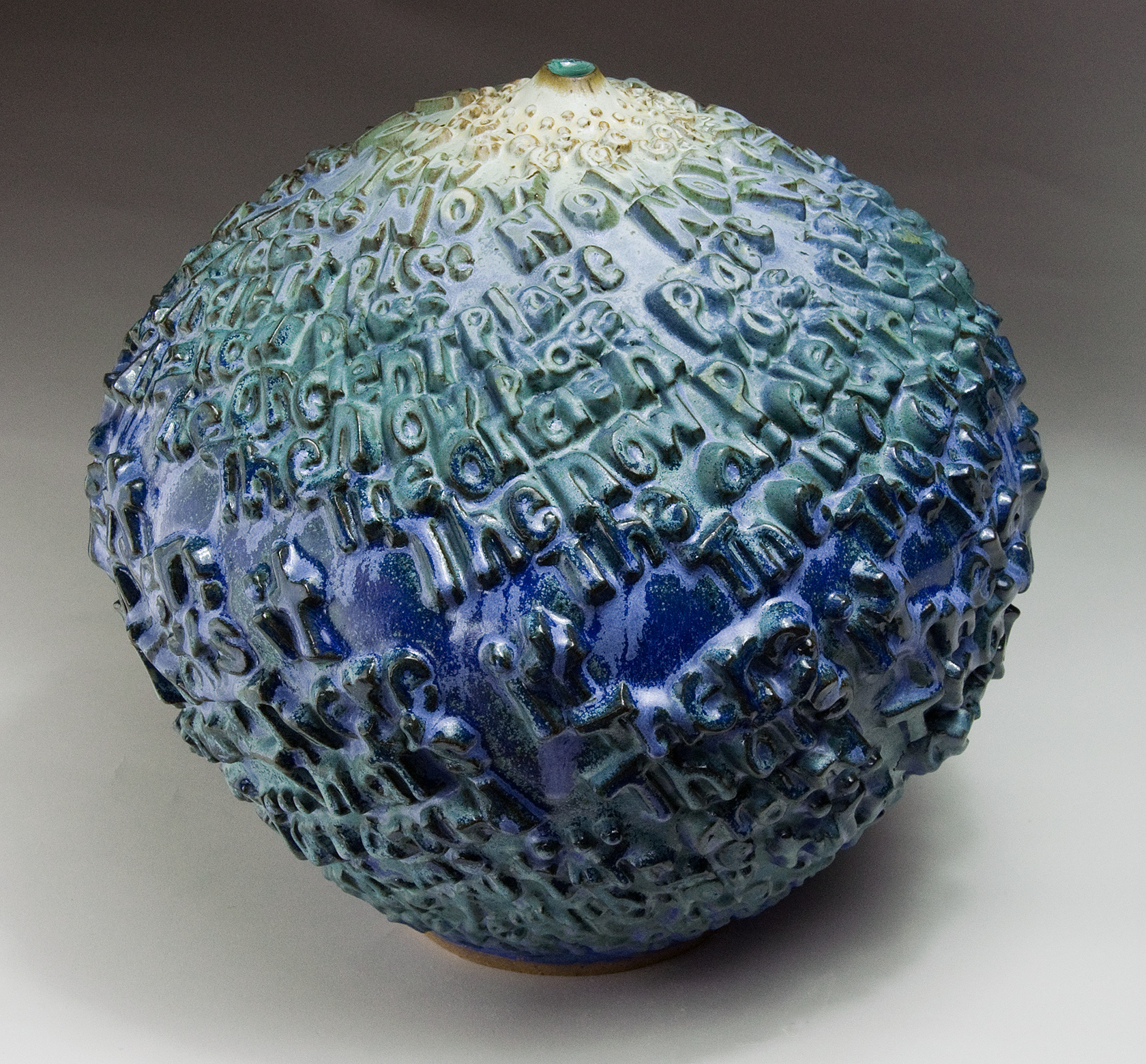 In 2001 while visiting the Gulbenkenian Museum in Lisbon, she viewed their extensive collection of 17th-Century Turkish Iznik pottery. The overwhelming beauty of this collection suggested that “perhaps beauty is enough”. Returning home, she began learning ceramics. But she found that the vessel form, with its exterior and hidden interior, immediately suggested meaning and an ancient resonance. For her, “beauty” doesn’t exist without “meaning”, so she creates conceptual and even contemplative ceramic vessels, some now covered with words.