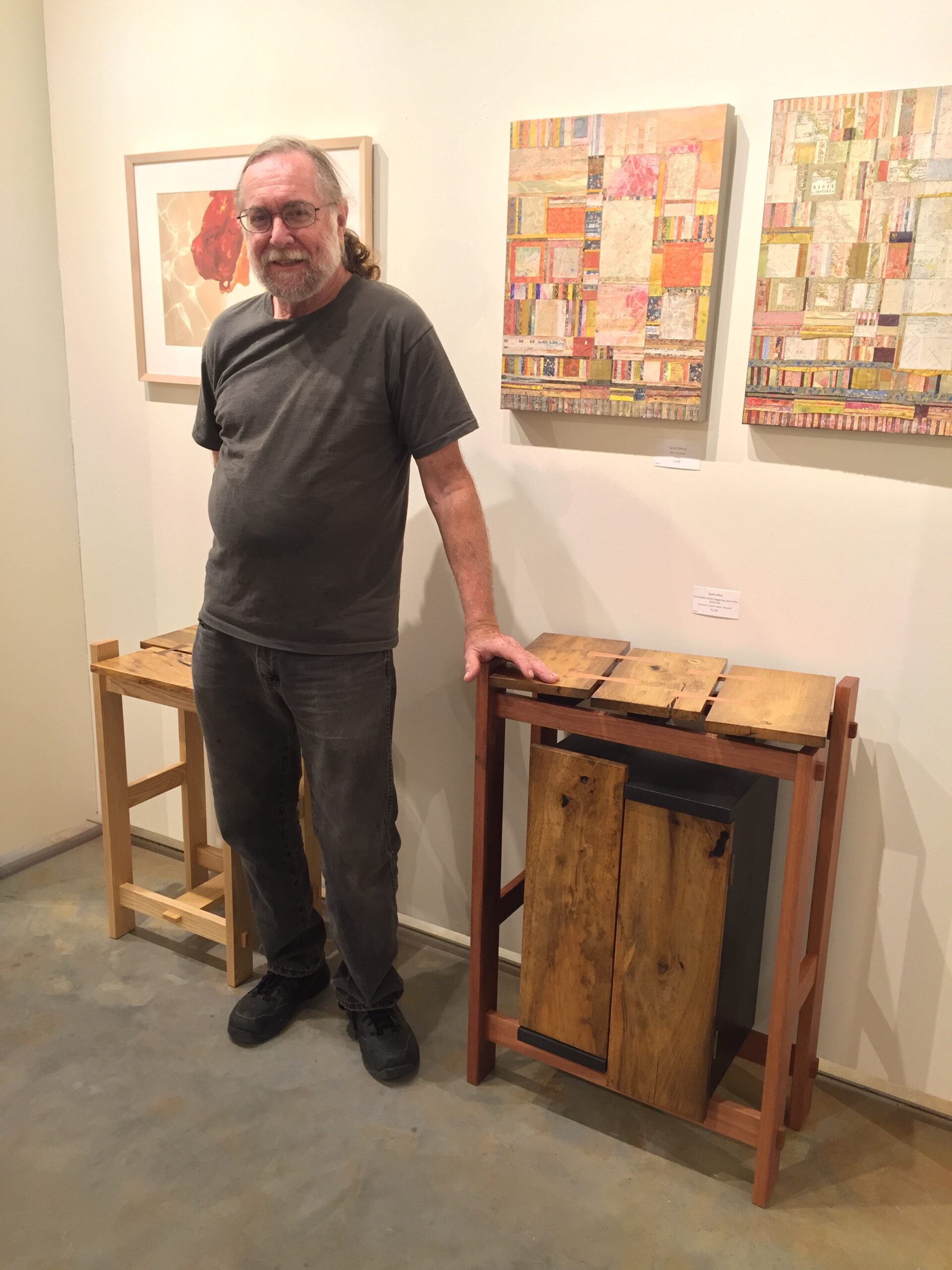 Born in 1945 in the Midwest, Keith grew up in Virginia. He enjoyed drawing and making things. His early ambitions included architecture and automotive design. Upon graduating from high school when he was barely 16, he wanted to attend General Motors Institute. Being too young to qualify for that program, he went instead to the University of Virginia, where he studied mathematics, earning B.A., M.A., and Ph.D. A twenty-year teaching career followed, gradually transitioning from mathematics to computer science, in which he earned an M.A., from Indiana University. While teaching, Keith taught himself woodworking and furniture making on weekends, in a garage workshop. Early influences, which continue to the present, were George Nakashima, whose work featured natural edges and butterfly joints, and Gerrit Rietveld, whose work was starkly geometric and brightly colored. Since 1988, Keith has lived and worked in Orange County, NC, making and selling furniture of his design. He has published articles and letters in Fine Woodworking, Woodshop News, and Woodwork.