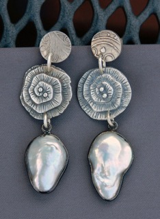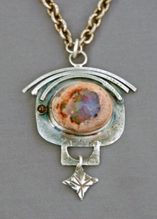 In fabricating jewelry, I spend a lot of time experimenting with new techniques, such as including layers of resin with fine silver pieces, using keum boo (an ancient Korean technique for applying a layer of 24k gold), and figuring out how to incorporate a vintage piece into something modern and edgy. It is important to me that my jewelry be “green,” so I mostly use recycled sterling and fine silver.