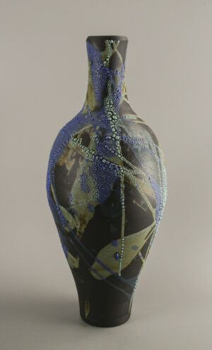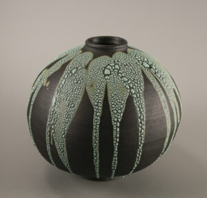 My approach to the visual world has certainly changed with my interest in ceramics. I’ve become a keen observer of nature’s forms, carrying a sketchbook everywhere. While still aiming for more refinement in my pieces, I have gained enough confidence to experiment with shape and glazes, and it is exciting. Honestly, six decades along and I’ve only just discovered that the right side of my brain functions! I’m striving to define my “style” and, while not there yet, I’m coming to grips with some of the elements: clean lines, classic shapes, subtle alterations. Some of my most rewarding ‘experiments’ so far have dealt with glazes and glazing. I prefer to spray on my glazes since I feel in greater control of the process; in addition, spraying allows me to layer glazes in an intentional way to develop a rich, varied surface.