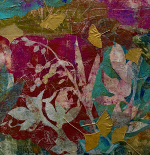 For the past 12 years, I’ve been working with encaustic medium in which beeswax, resin, and pigment are heated to 200 degrees and then applied to a wood panel. Each layer of wax is heated with a propane torch or heat gun, fusing it to the previous layer. It’s possible to build up many layers of wax, oil paint, paper and other collage materials and also to scrape back and incise the surface. Colors, shapes, and lines from previous layers reappear when wax is scraped away, so the history of the piece can be rediscovered. The heat applied can cause surprising changes and merging of colors. This ancient and durable medium has a mystery, luminosity and organic quality that give the final pieces a spiritual feeling.