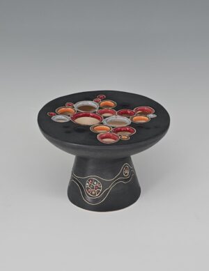 Sasha Bakaric was born and raised in Croatia where she had a successful career in finance and management. Graduate school and family brought her to the United States. Her first encounter with clay was a pottery class for toddlers that she took with her then two-year-old daughter. Sasha felt the attraction and started taking classes and workshops and eventually decided to dedicate herself completely to ceramics. She established Sasha Ceramics in Chapel Hill where she has a fully equipped working studio. Sasha makes hand built functional and sculptural pieces, mostly simple forms decorated with intricate designs.