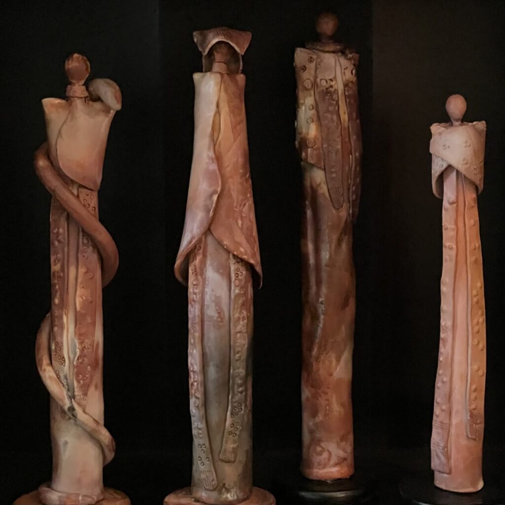 This collection of ceramic work gives voice to Amy’s complicated process of grieving the passing of her abusive father. It is a part of her ancestral healing path, exposing what has long been hidden, tending to her inner child, and offering her what no one else could. These ceramics lean into Amy’s interest in the human emotional experience and how our ideas, thoughts, and feelings take up space and bubble out into the world. Amy hopes the resonance of these vessels reaches your inner landscape and helps you to feel more deeply.