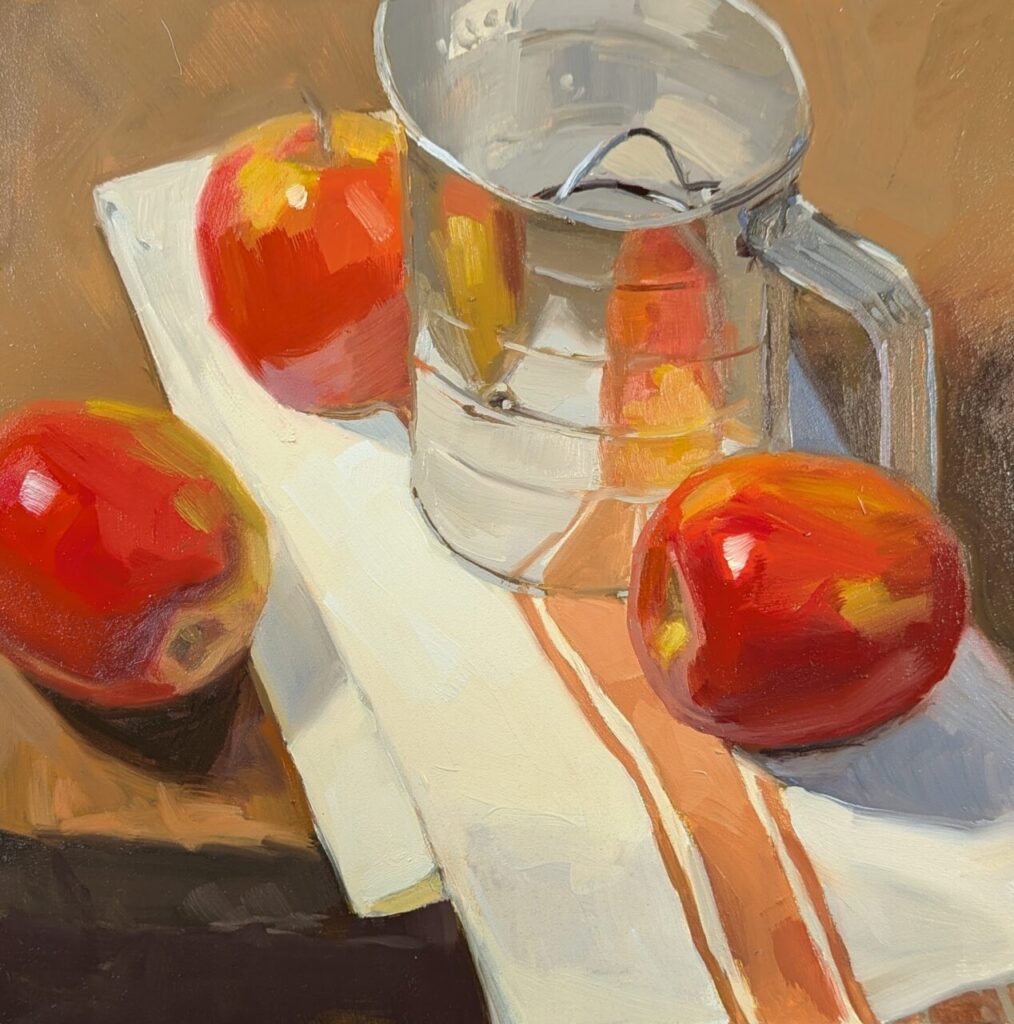 Joe Paquet urged artists to “paint the Grand Canyon in your own backyard,” and Susan has taken this advice to heart with her oil paintings. The animals, fields, and farms of Orange County are some of her favorite subjects. Susan’s second passion is still life painting, which allows her to freely explore color, composition, and viewpoint. Every material offers a challenge and an opportunity to explore the quality of light.