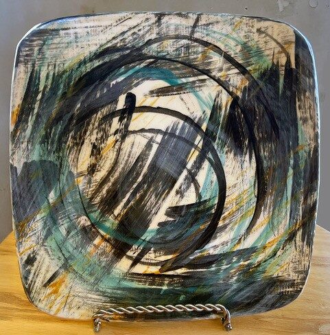 Reacting to complexity in the world, Linda presents us rounded, simplified clay forms that bring a sense of quiet. These pieces abstractly speak of trees, sky, and birds. It is definitely Linda’s most painterly series of work. The painted surfaces show her expressive brushstrokes as color layers with color.