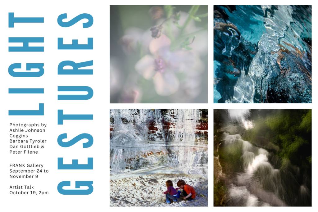 - Artist Talk: October 19th 2-3pm; Ashlie Johnson Coggins, Barbara Tyroler, Dan Gottlieb, and Peter Filene talk about photography, their processes, and work on display at FRANK.