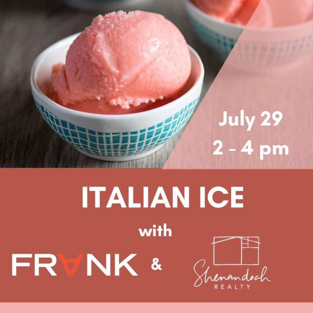 Stop by the new FRANK Gallery location on Saturday, July 29th from 2-4pm for a special summer get-together with Shenandoah Realty clients, art lovers, and friends. Enjoy your Italian ice, peruse the current exhibition, and think about art for your home. The event is free.
