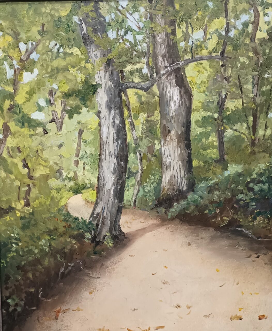 Carroll Lassiter, Haw River Path, oil on panel, 16 x 20 inches