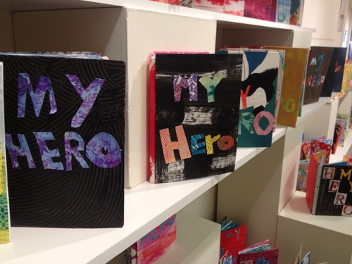 Hero Books: FRANK textile and fiber artist Marguerite Jay Gignoux works with the language arts department of Durham Academy to teach handmade bookmaking to the students. The books are themed “Hero Books” where each student honors their own heroes, these books have been displayed and presented in front of the gallery for a memorable and moving showcase.
