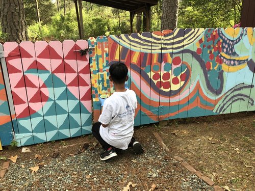 Boomerang Youth partnership: The gallery has been working with youth of Boomerang, a wonderful organization located in Chapel Hill. In the Spring of 2022 a 34-foot fence was painted and completed by artists and kids from Boomerang. Classes with FRANK artists are important to the students this great organization serve. We can’t wait to see how our partnership continues to grow!