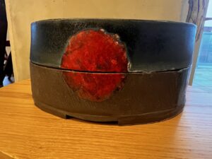 Black, white, red box with compartments