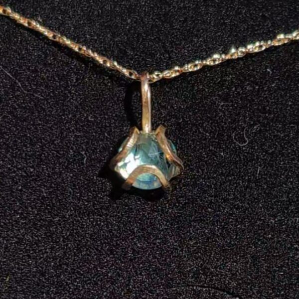 Solid 14K Gold, Blue Topaz 16″to 18″ adjustable chain, 1/4″ Pendant, 6mm Gemstone