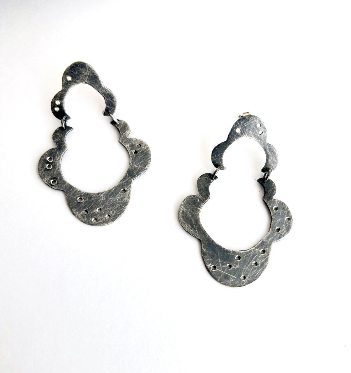 Wire wrapped SS teardrop stamped earrings taupe gray