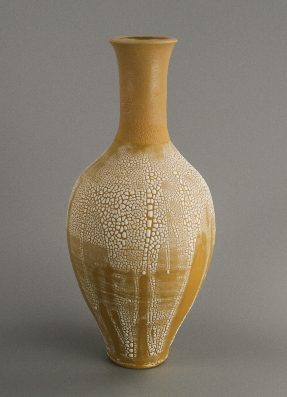 White stoneware Vase with Deep yellow underglaze and white lichen glaze