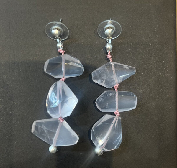 Earrings – Pretty in Pink – Rose Quartz 3 stone earrings