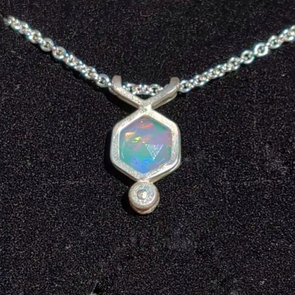 Fiery Ethiopian Opal set in solid argentium silver with a tiny hand hammered rivet. 1.1 ct 8mm opal, natural and untreated