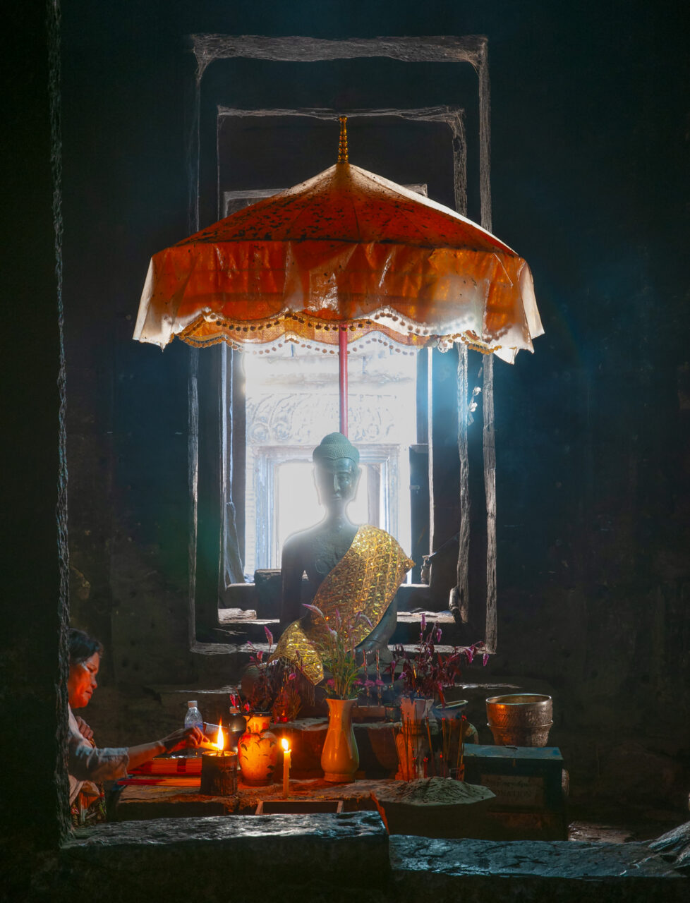 Photo construction of image of Buddhist alter a in Angkor Wat Cambodia