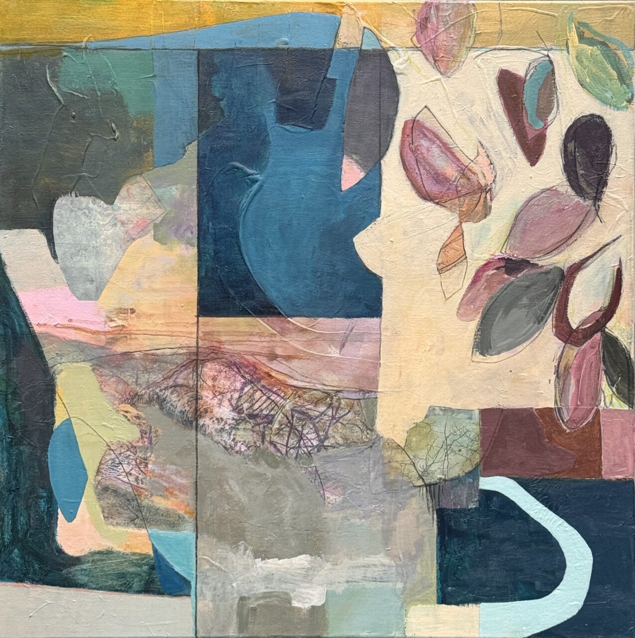 Acrylic paint, image transfers of photos, charcoal and graphite on canvas