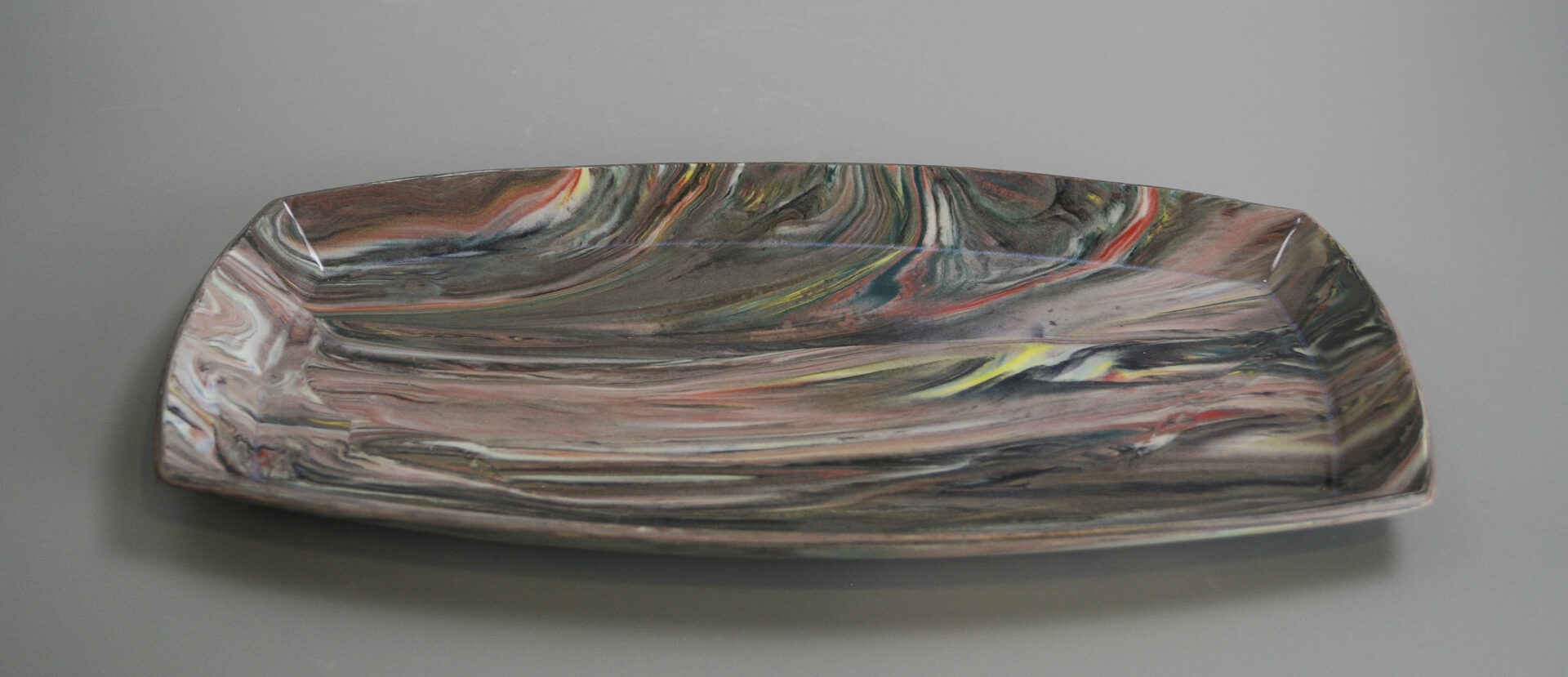 handbuilt platter, made with marblized porcelain food and dishwasher safe
