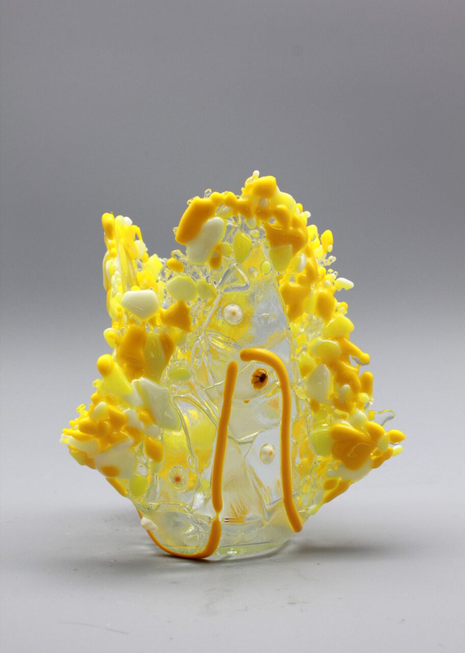 Shards Series: Mini sculpture crafted with individually hand-cut and crushed shards of glass. Kiln fired through multiple heating and cooling cycles, and cold worked to its completion.