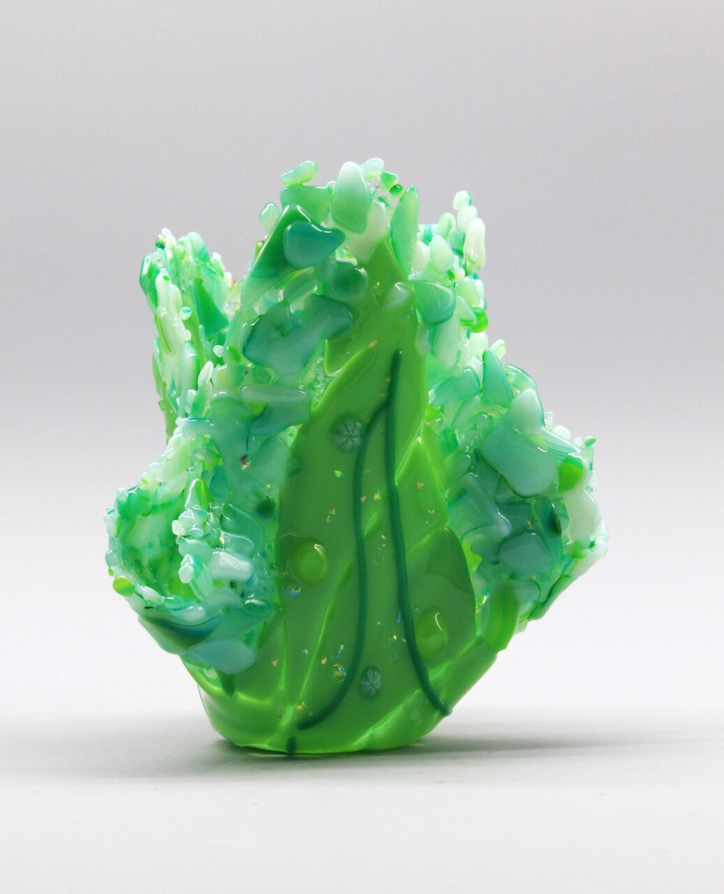 Shards Series- Mini sculpture crafted with individually hand-cut and crushed shards of glass. Kiln fired through multiple heating and cooling cycles, and cold worked to its completion.