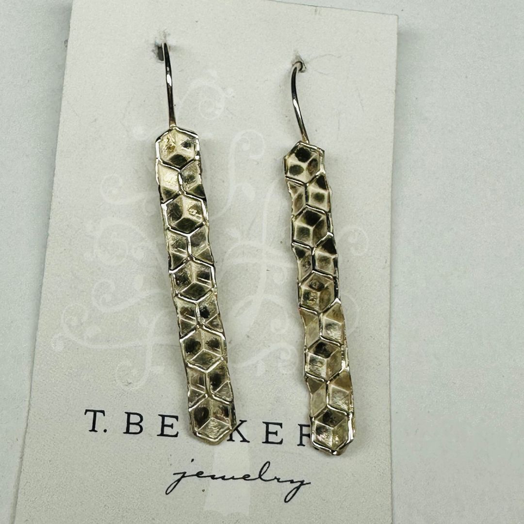 Wire wrapped SS teardrop stamped earrings taupe gray