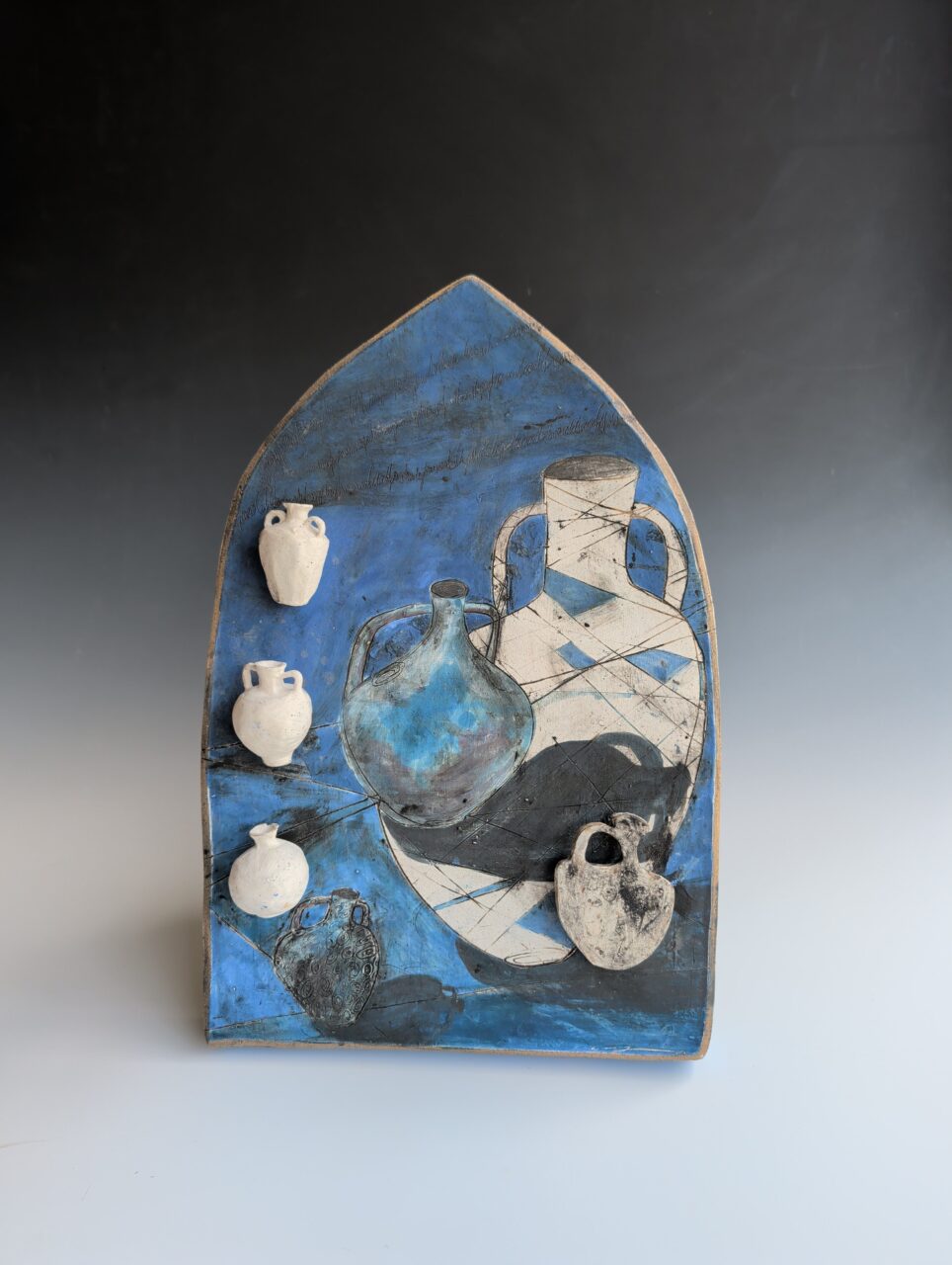 Ceramic slip, stain, terra sigilata, underglaze,nichrome wire.