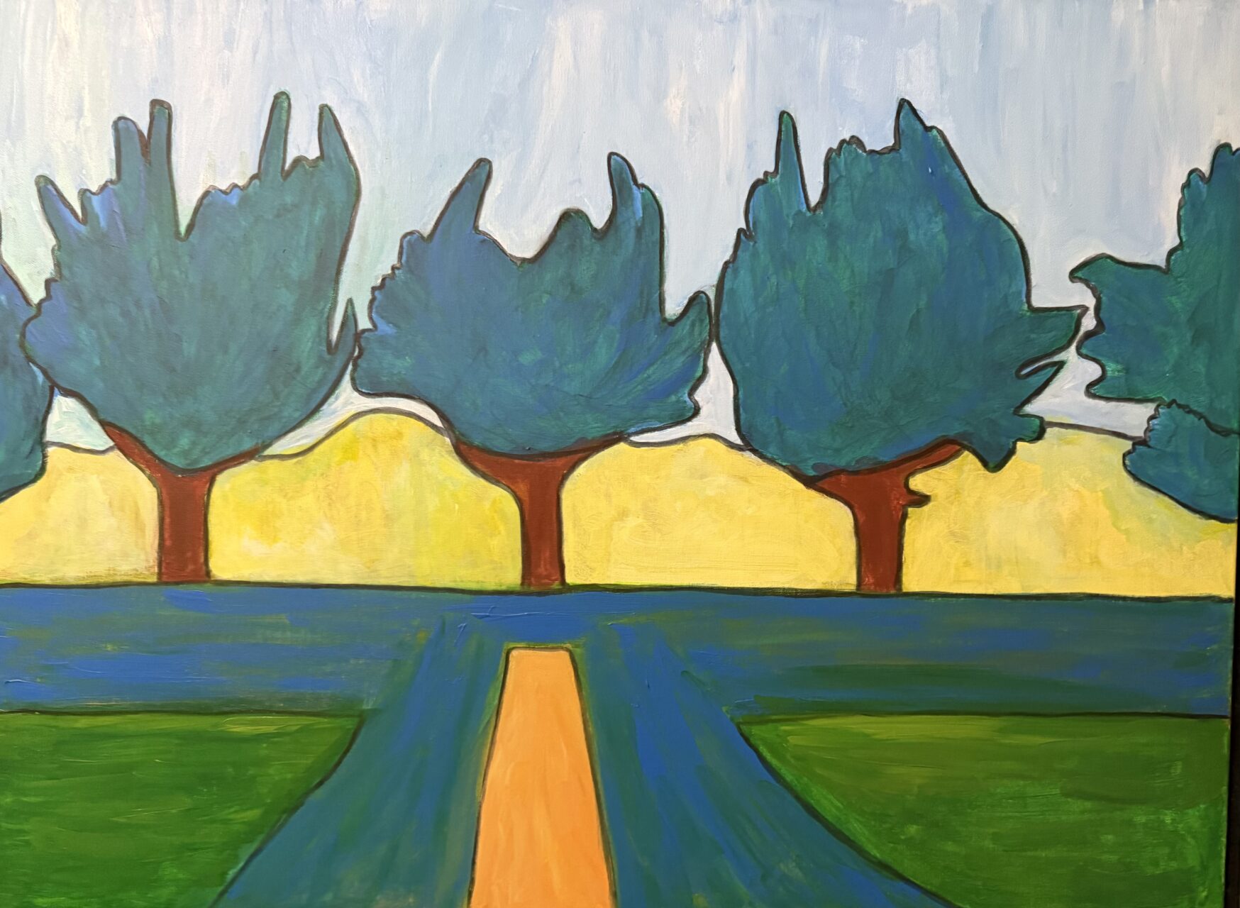 Acrylic paint and water soluble pen on canvas