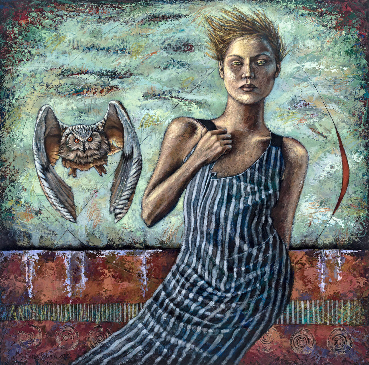 Cold wax and oil on wood panel