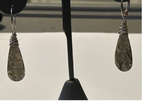 Wire wrapped SS teardrop stamped earrings taupe gray quantity